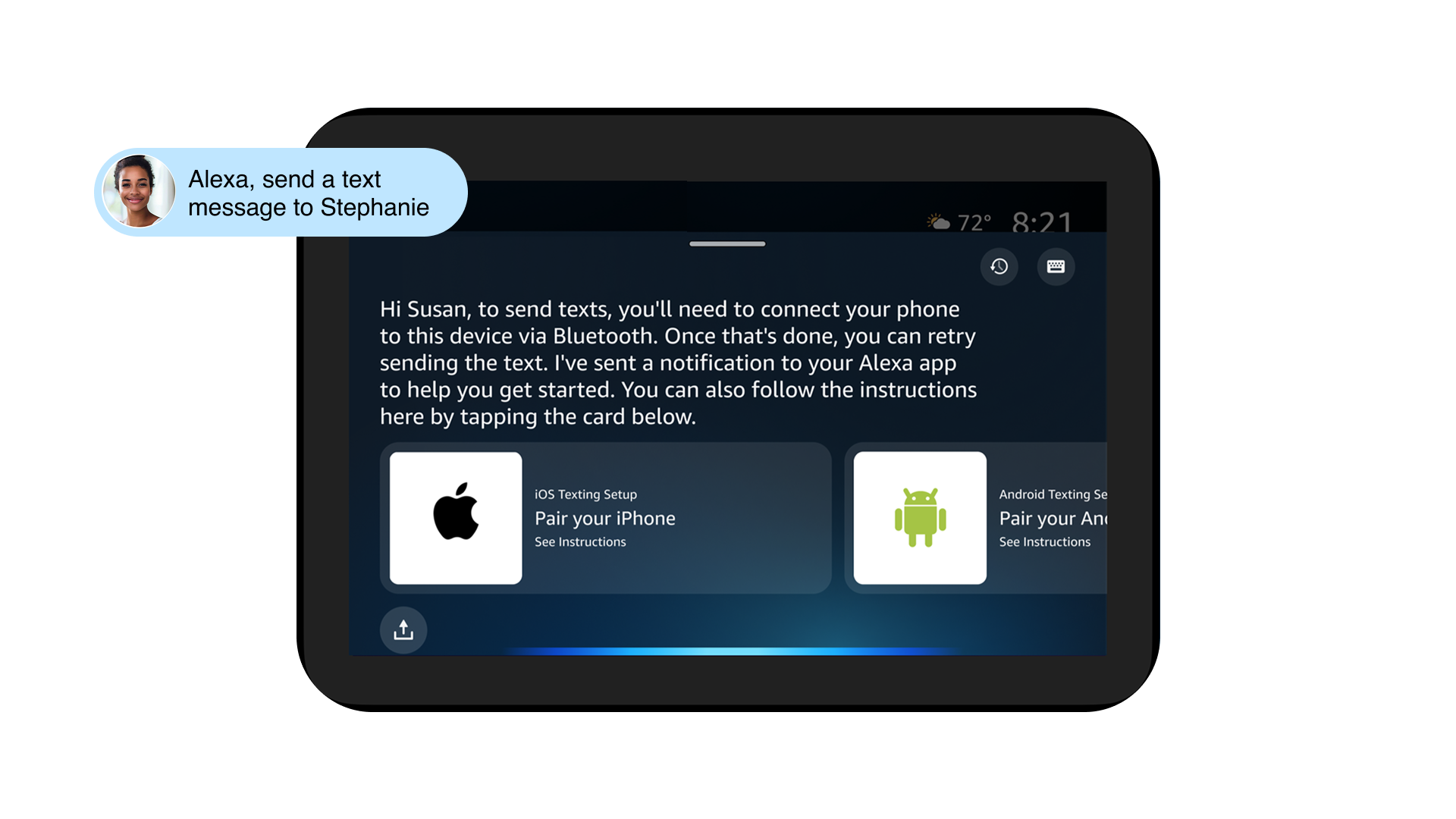 Draft and send text and email - I led a team of Senior UX Designers to create a vision for how customers draft and send text messages using Alexa. This vision also includes contextual setup experiences.