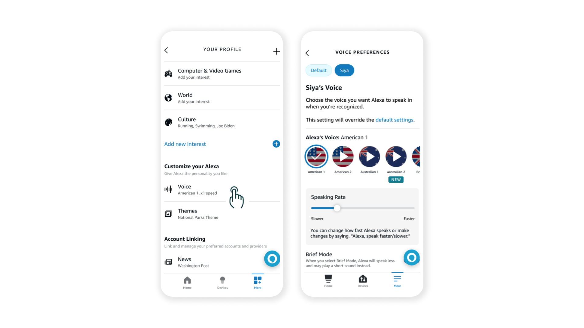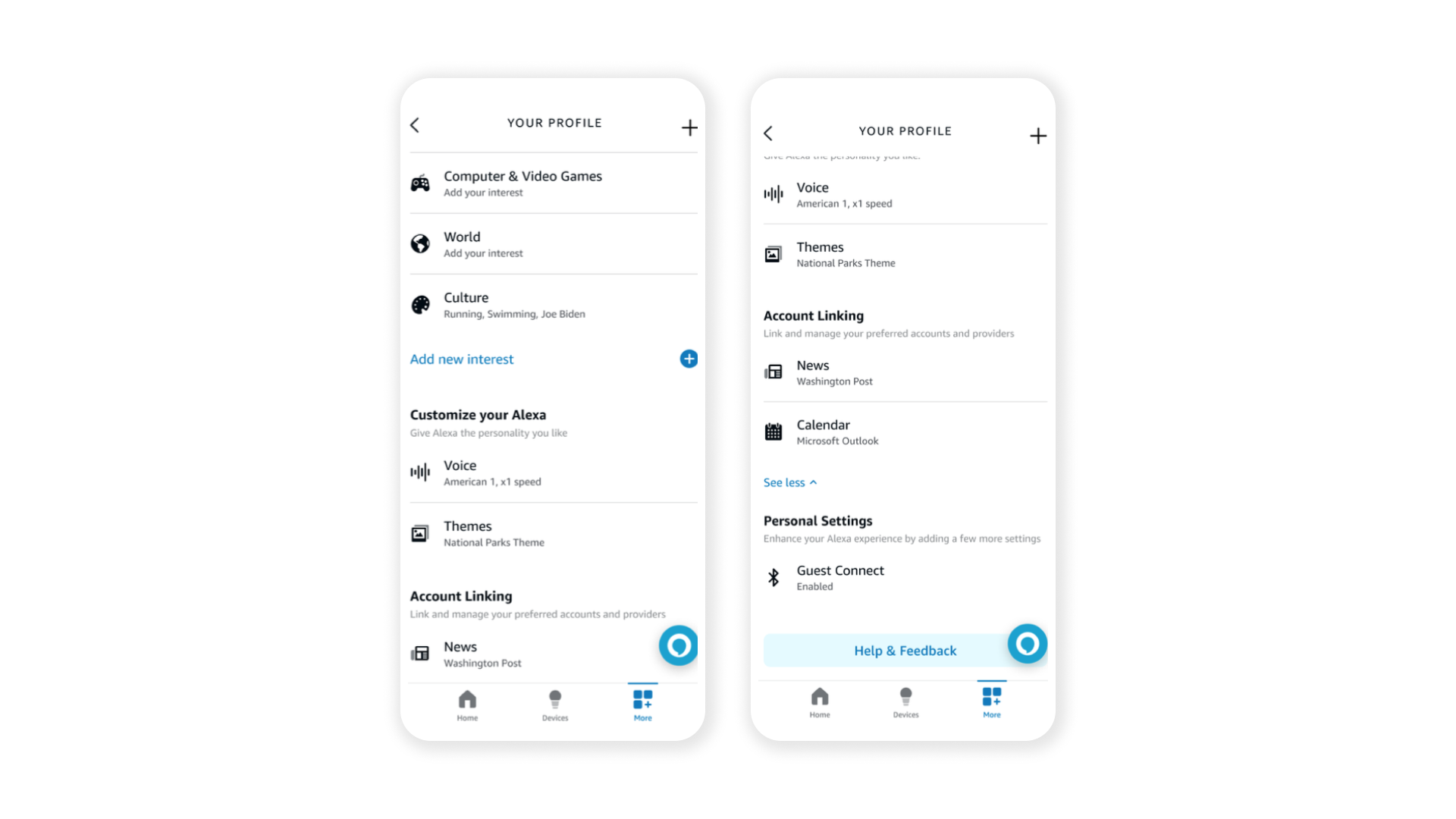 Alexa’s voice and speaking speed can also be customized from the new profile page.