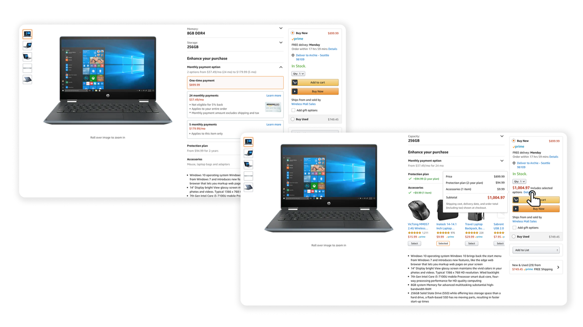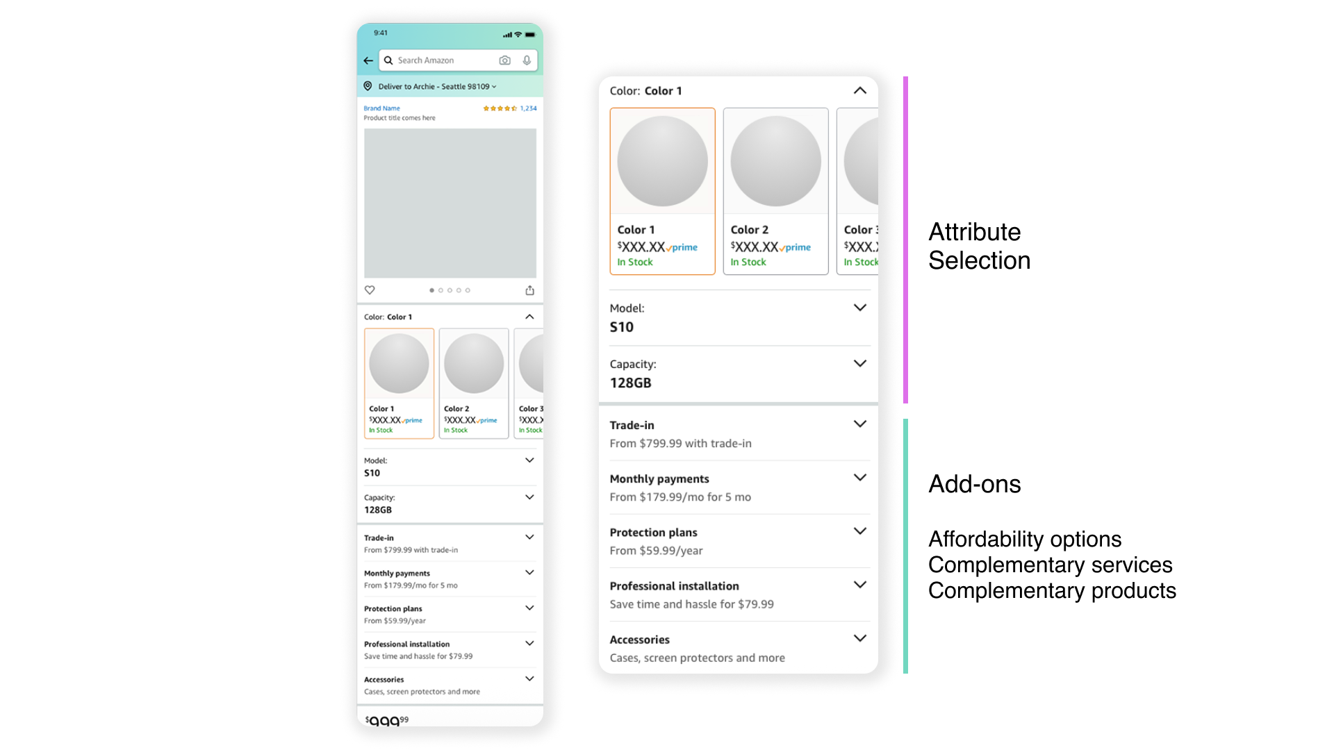 I designed the scalable related products framework for Amazon’s product detail page. This framework empowers customers to explore and discover various product variations, add-ons such as protection plans, accessories, and payment plans, among others.